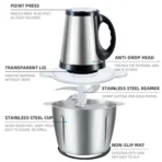 This compact electric meat grinder is made with high-quality stainless steel and designed for fast, quiet, and efficient food processing. Available in 2L and 3L capacities, it’s ideal for everyday home kitchen use.