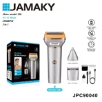 The JAMAKY JPC90040 is a wireless hair trimmer with adjustable combs, a nose trimmer, and a shaver, with USB charging for ultimate convenience. Compact, powerful, and versatile for all your grooming needs.