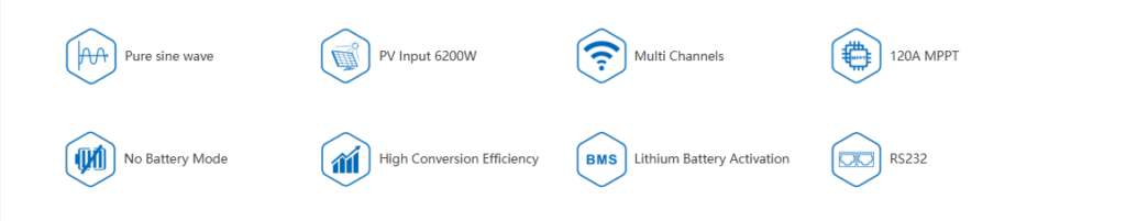 HWOO WP-6.2K-PD is a 6.2kW off-grid inverter with dual AC outputs and parallel operation capability, allowing for flexible expansion to meet increasing power demands.