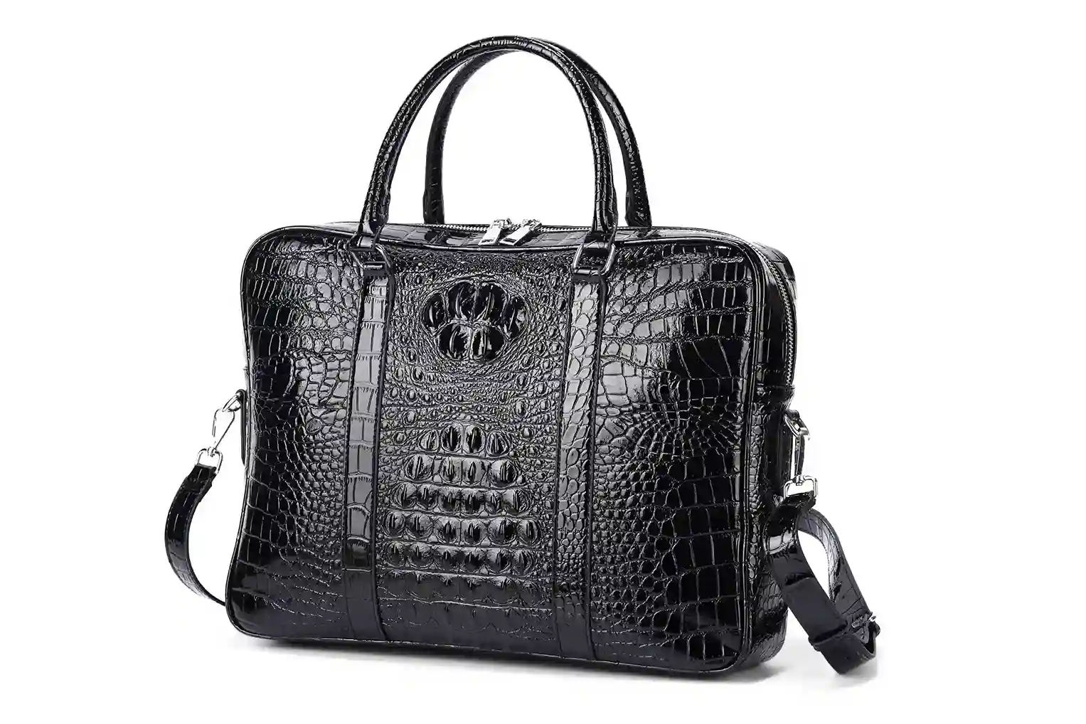 Paultino Crocodile Leather Office Briefcase – Luxury Gloss Black Business Bag