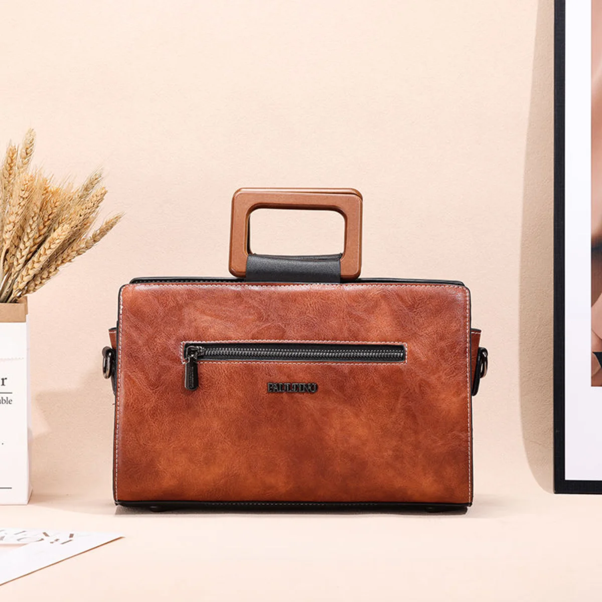 Women’s Printed Handbag with Top Handle – PU Leather Multi-Compartment Office & Casual Shoulder Bag